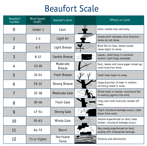 13.1 Windy conditions, in the event of windy conditions you can use this Beaufort scale to judge whether the conditions are safe to use the inflatable. The scale starts at force 0 which is calm and goes all the way to force 12 which would be a hurricane force wind. In the event the wind is exceeding force 5 which is a wind speed of between 19-24 mph everyone should vacate the inflatable and be deflated immediately and then only re inflated once winds have subsided.