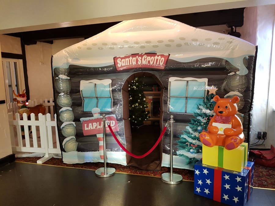 Here we have our 10x12 inflatable Santa`s grotto it is in a log cabin theme with pictures of Santa and snow men on the outside, then on the inside it has a picture of a log burning fire which has a real cosy effect. This is a great inflatable for schools, shopping centres, corporate events, Christmas parties and much more.
