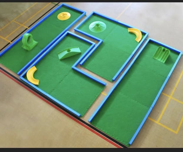 This is our portable 4 Hole Mini Golf, Crazy golf course which comes with 12meters of playing surface that has a variety of challenges to over come. The crazy golf can be used indoors and outdoors and is suitable for many different events and can be used by children and adults.