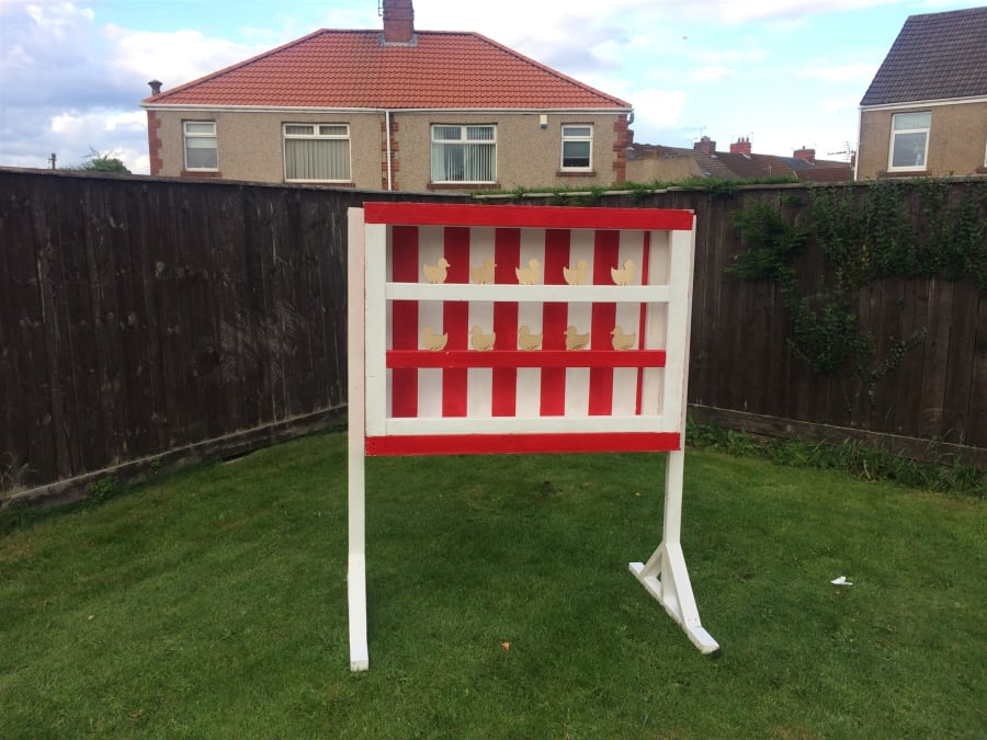 Shoot the Duck is a classic Funfair game that has been around for over a hundred years. Here at Premier Bouncy Castles we have updated ours, instead of using the original cork gun we have decided to use the more precise, safe and up to date Nerf gun which gives you an all round better experience.