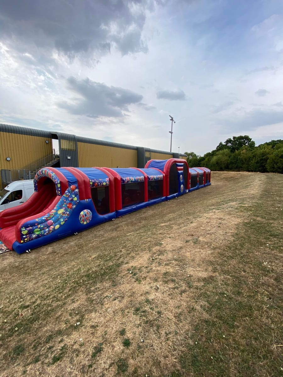 At a whopping 130ft long, this really is the ultimate high energy assault course! If you are willing to take on this challenge you will not only need to have stamina to get you to the finish you will also need courage to take that leap of faith of the base jump which is 15ft high then after you land on the air bag you must then tackle the mega slide to get you to the end.