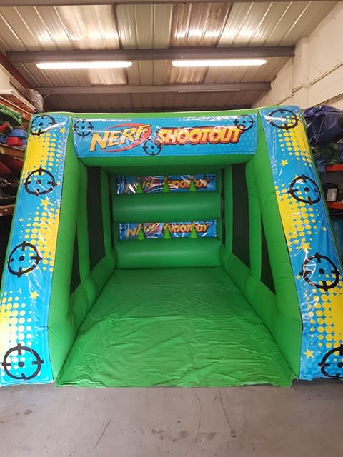 Here at Premier Bouncy Castles we are always on the look out for new and exiting products to add to our companies already fantastic inflatable games range. We are now pleased to be able to offer you our new Nerf Shooting Range. The inflatable Nerf shooting range has excellent colour scheme and artwork to match. With your hire you will get 2 Nerf guns plus ammo and a pair of safety glasses. The aim of the game is to shoot as many of the floating balls off the air cones as possible. This Nerf shooting range is a great addition to any event and remember we cover Newcastle, Middlesbrough, Durham and the rest of the North East. If you would like any more information on this please just give us a call on 01388 347201 or alternatively you can click on this link Contact Us send us a email.