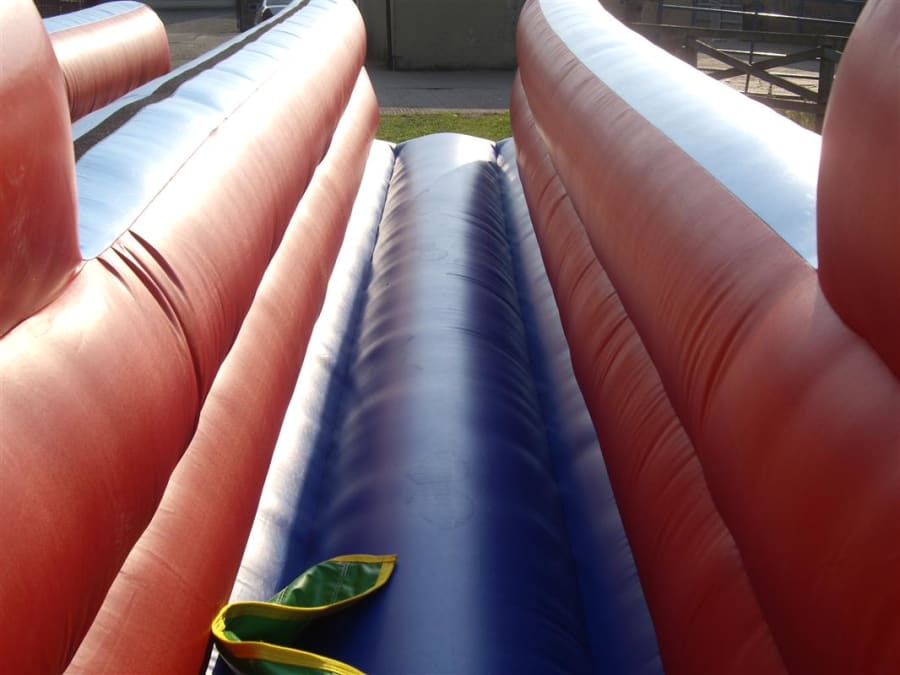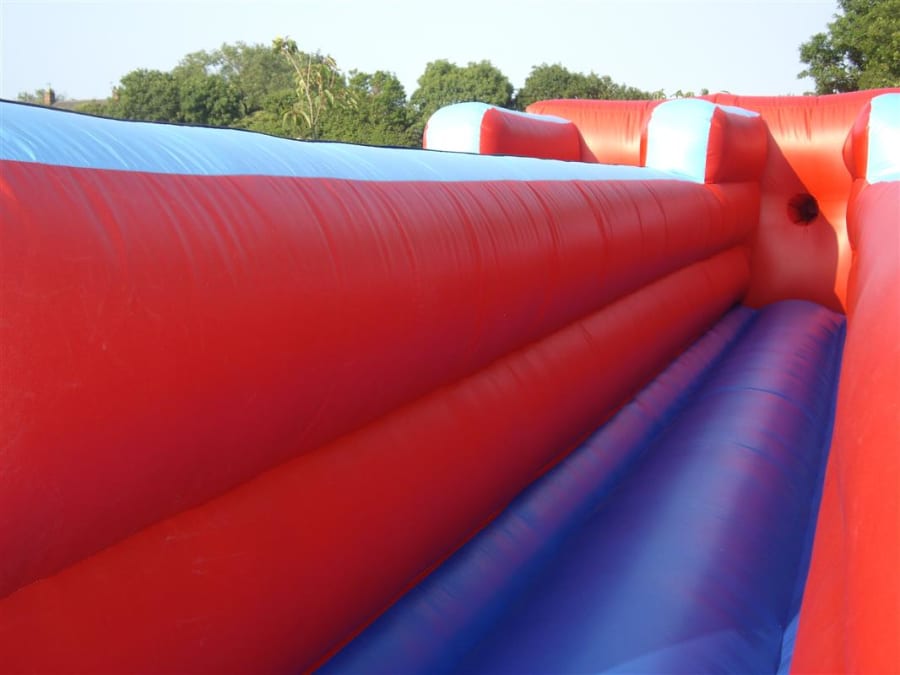 The 11x30 bungee run comes complete with member of staff ,electric blower, mats, Velcro batons and pegs. Age 6 to 70 Years