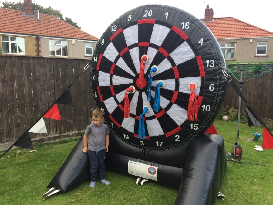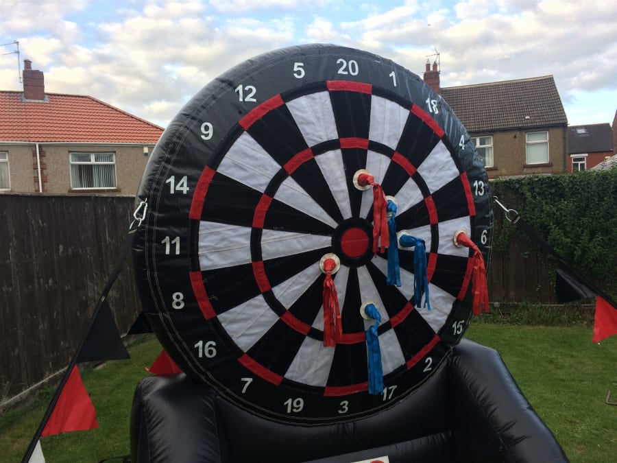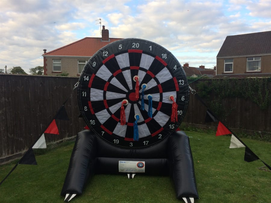 Why not hire our inflatable Giant Dart Board and become the next Phil Taylor, this will keep everyone entertained for hours.It is the same concept as the original game but just on a bigger scale. The dart board stands 8ft tall and has 6 Velcro darts 3 for each contestant.
