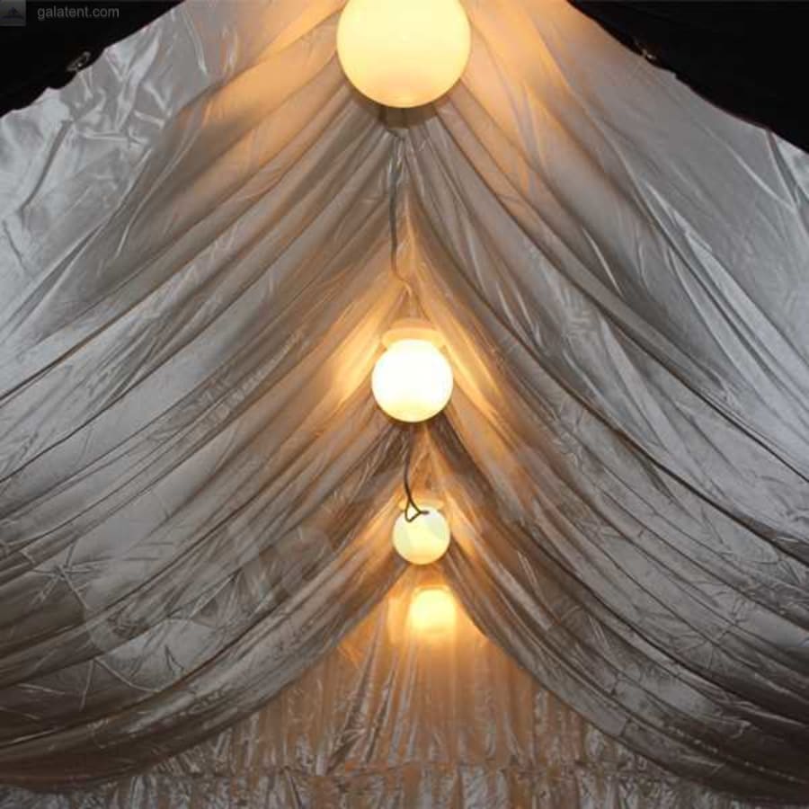 If your event is going to run into the evening then you may need to hire our led globe lights. We do offer different size lighting kits depending on which size marquee you hire.