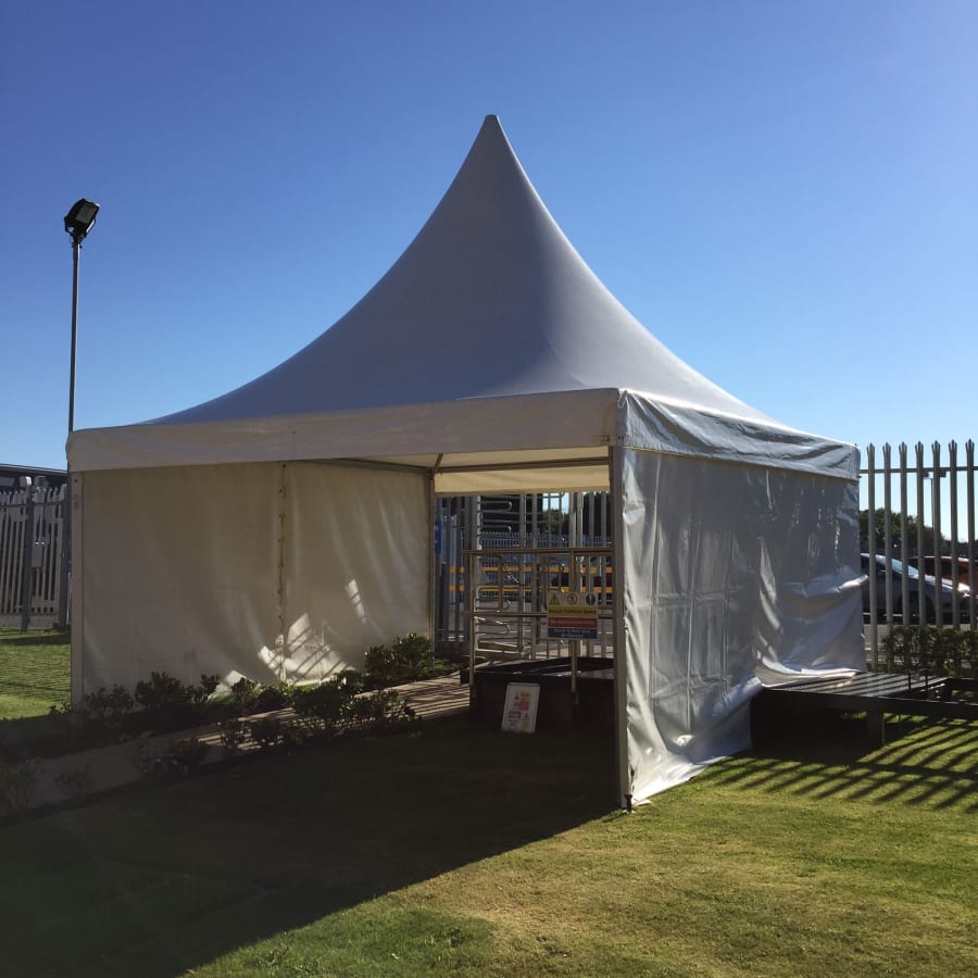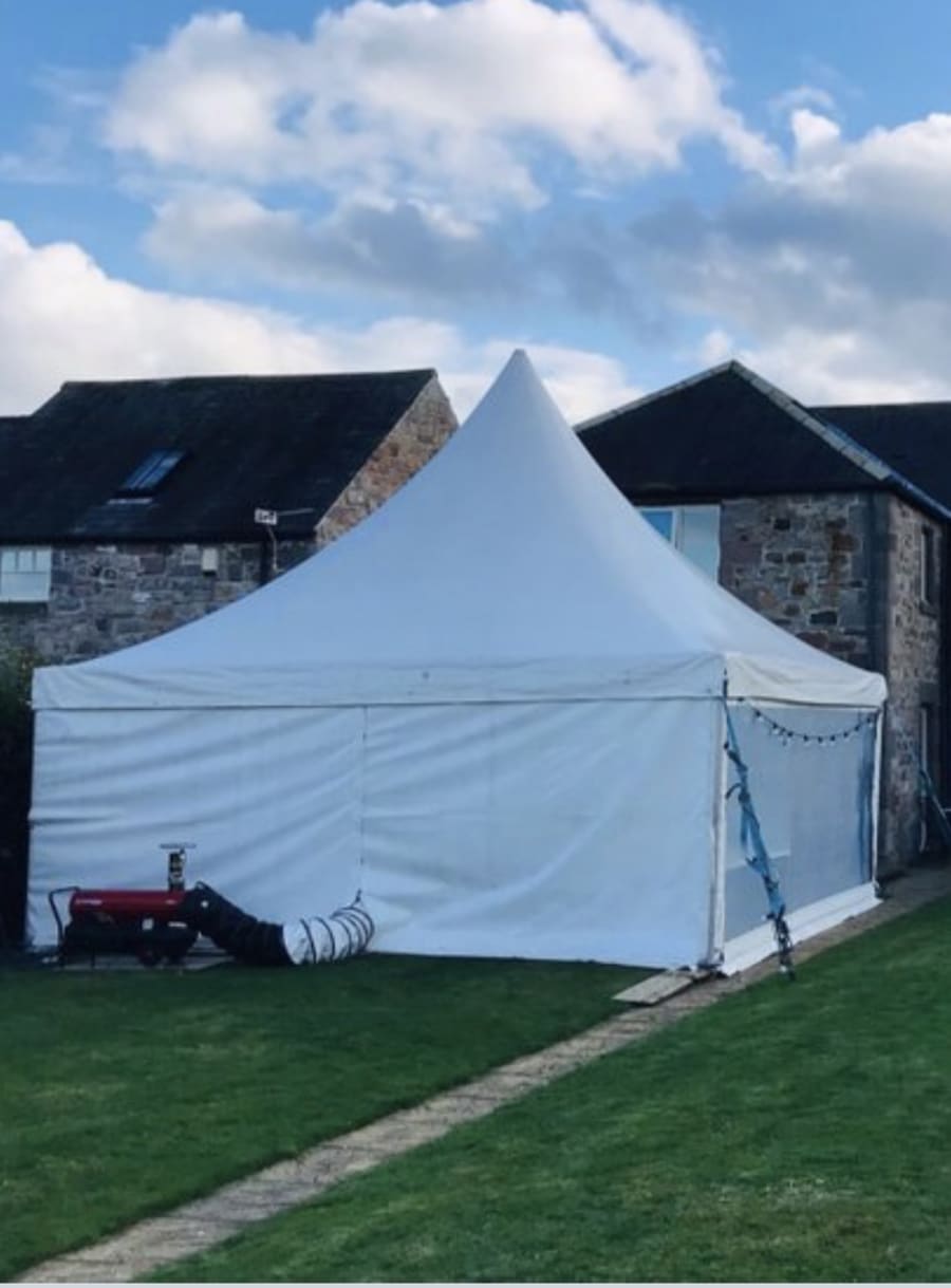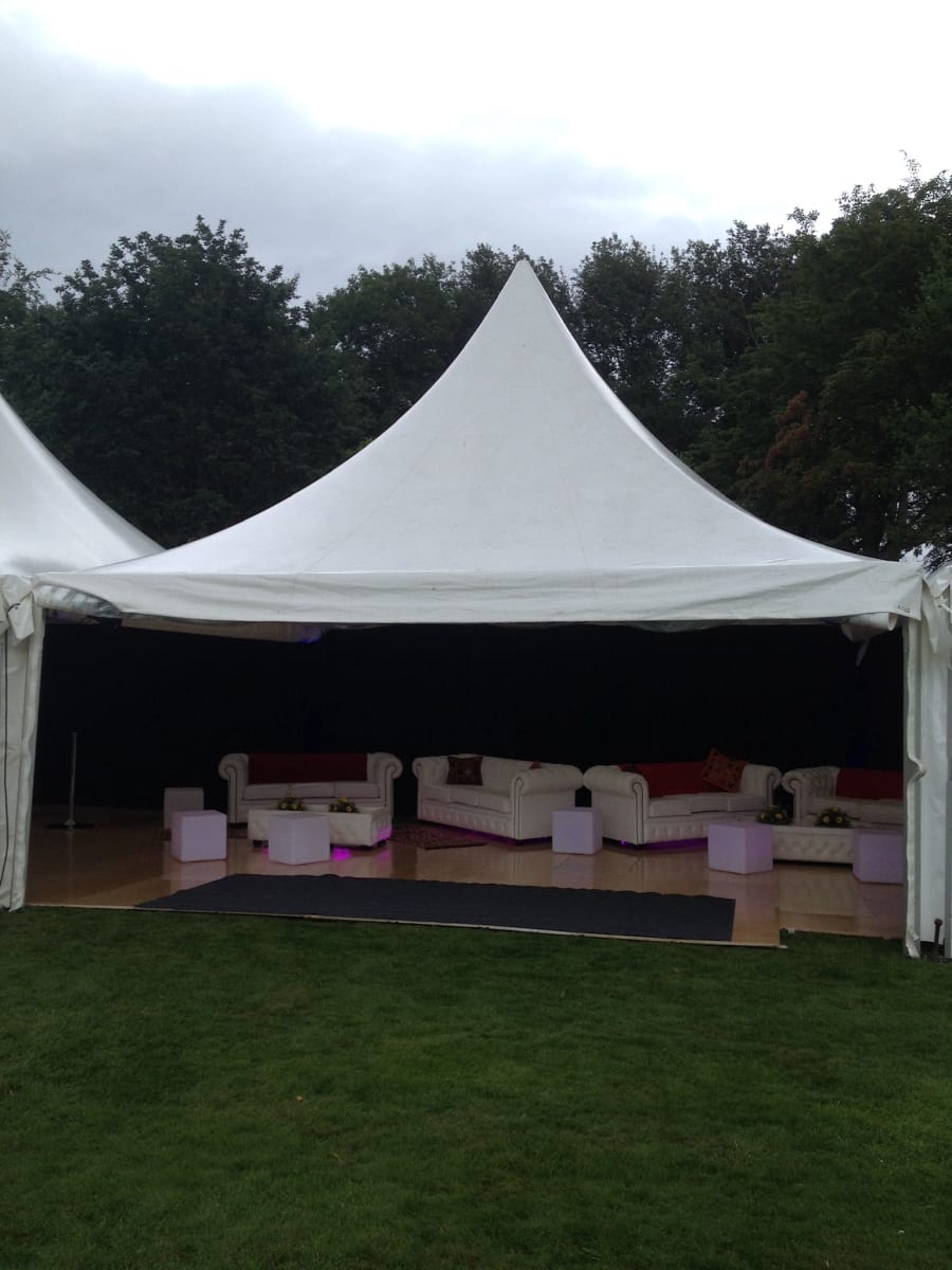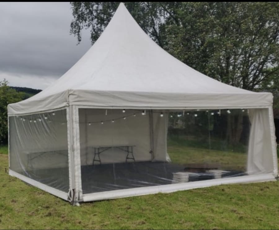 This is one of our most popular marquees we have its perfect for many events. It measures 6m x 6m in diameter and can quite easily accommodate 40 guests seated or 70 standing. this pagoda marquee can be hired with or without sides and we can also supply