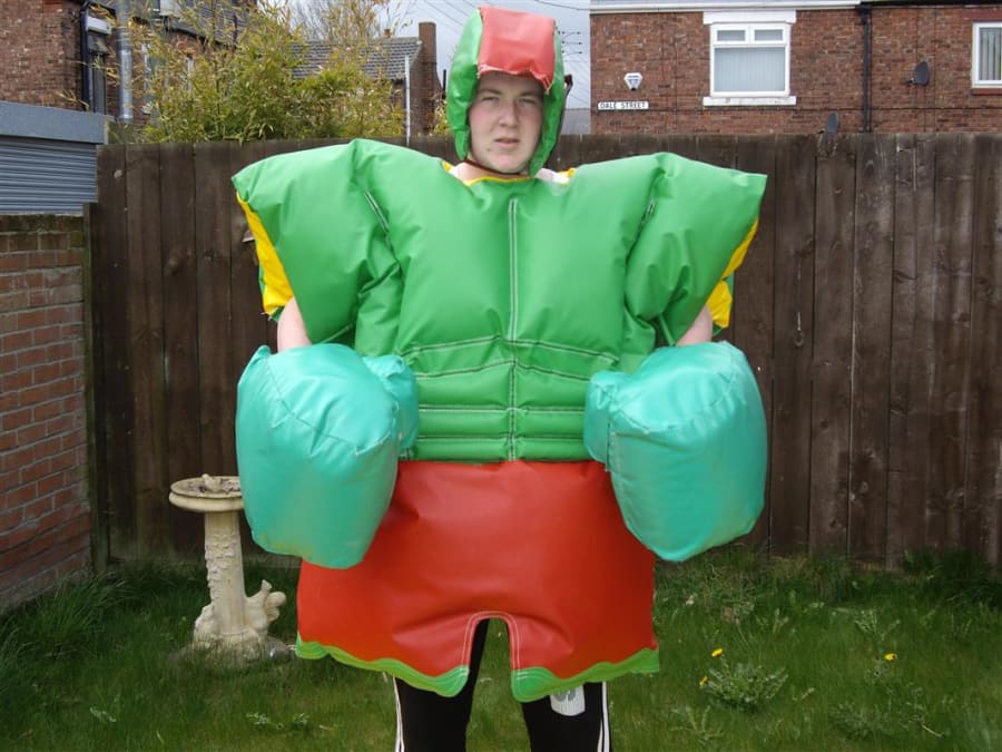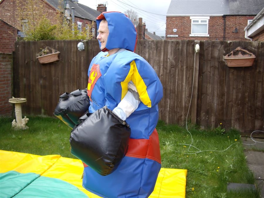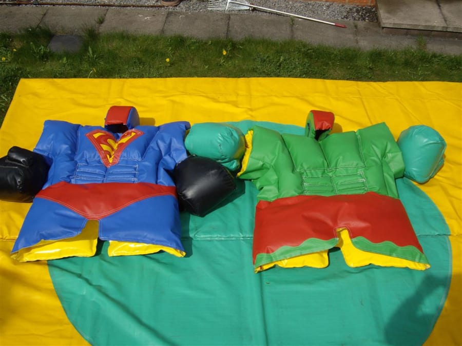Superman v Hulk adult superhero wrestling suits. Why not try our comic book superhero wrestling suits they are a fantastic alternative to the usual wrestling suits. The aim of the game is to push, pull, belly bounce and try with all your strength, whit and super powers to get the other superhero out of the circle on the mat or pin them on the floor. This game is as much fun for the spectators as it is for the contestants so why not give them a go and unleash your superhero powers on your next opponent. What you will get with your hire is 2 superhero suits, 2 helmets, 2 sets of gloves and 1 mat. the age limit on these suits is 12 yrs To 70yrs old and are suitable for indoor or outdoor use.